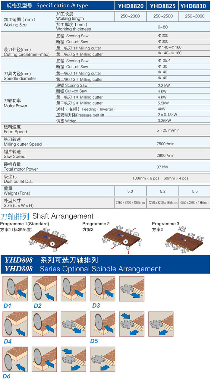 各刀轴配有读数显示器,准确显示刀轴调整的位置尺寸;